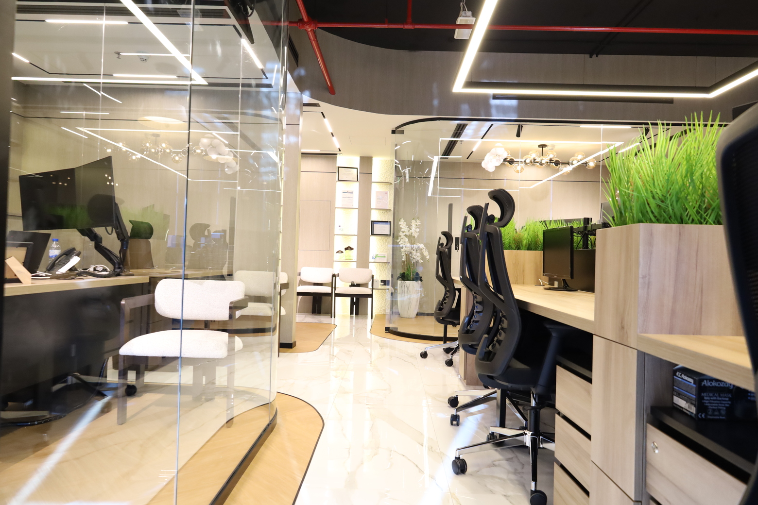 EBS wanted a modern workspace that could adapt to a growing workforce and encourage collaboration while supporting focused work. Our team developed an open-plan design with modular workstations and collaborative pods, giving employees the freedom to work in different ways. Custom furniture solutions ensured comfort and efficiency, while storage systems maximized usable space. To improve concentration, we integrated acoustic treatments and layered lighting systems that balance brightness with comfort. The reception area was designed to reinforce the brand’s forward-thinking identity, while private areas offered a sense of calm and focus. Every design detail was tailored to EBS’s culture of innovation, creating a workplace that encourages productivity and employee satisfaction. This project is a strong example of how The Zoom Interiors and Contracting transforms modern office interiors into functional, future-ready environments.